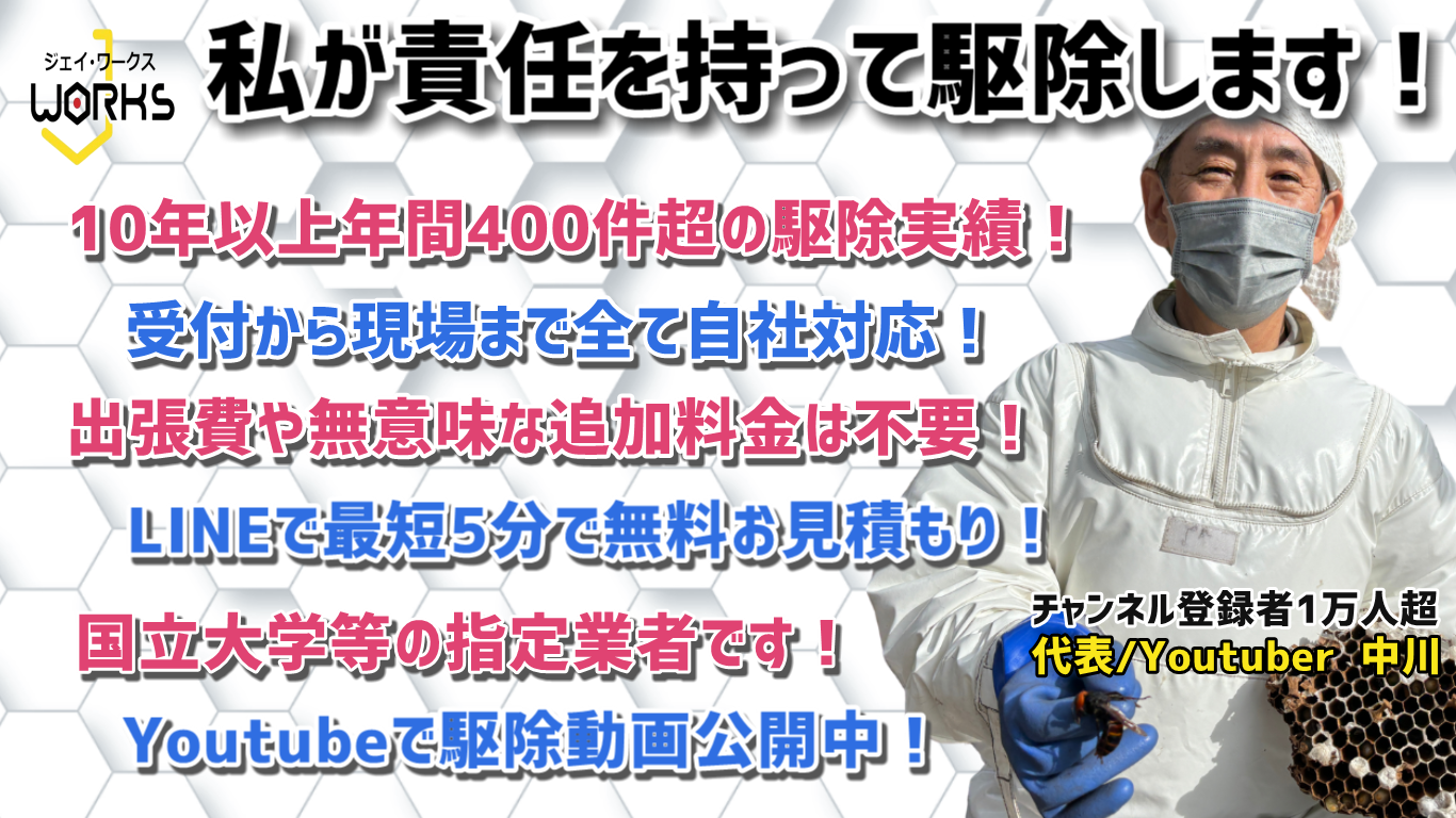 弊社のYoutube「滋賀のハチ駆除ジェイ・ワークスチャンネル」はスズメバチやアシナガバチの駆除動画が200本近くアップされております。